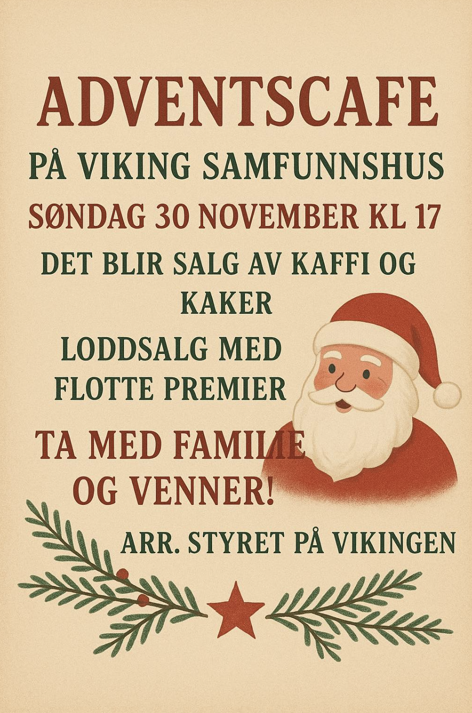 Markering av 1. søndag i advent med salg av kaffi og kaker og loddsalg med flotte premier!
